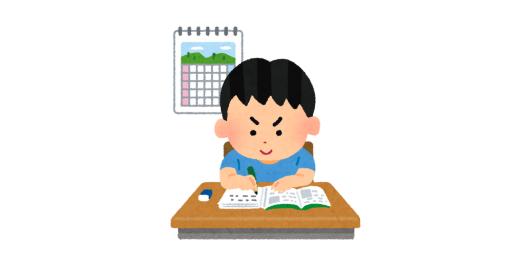 ガチガチに決めるのではなく、どこまでの期間を参考書勉強などに充てて、問題演習にどれくらいの時間を割くのか、試験前に過去問を解く時間は確保できるかなどを頭の中で組み立てて、できれば書き出しておくといいかと思います。
